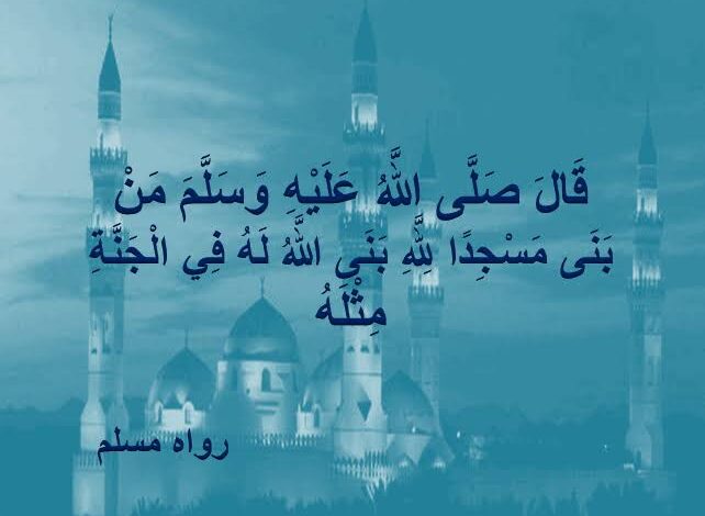 عَنْ عُثْمَانَ بْنِ عَفَّانَ قَالَ سَمِعْتُ النَّبِيَّ صَلَّى اللَّهُ عَلَيْهِ وَسَلَّمَ يَقُولُ : ” مَنْ بَنَى لِلَّهِ مَسْجِدًا بَنَى اللَّهُ لَهُ مِثْلَهُ فِي الْجَنَّةِ “.