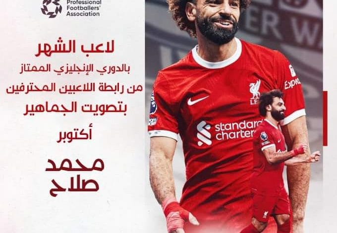 “للشهر الثاني على التوالي، الملك المصري يتوج بجائزة لاعب الشهر في الدوري الإنجليزي الممتاز من رابطة اللاعبين المحترفين بتصويت الجمهور “.