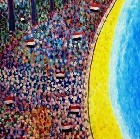 “انتفاضة 30 يونيو 2013 في حد ذاتها كانت فعلاً جميلاً، وصادرًا من قلب المصريين بمنتهى الطبيعية. وقد رسمتُ هذا المشهد من الإسكندرية كفعل تلقائي وردّ للجميل”.