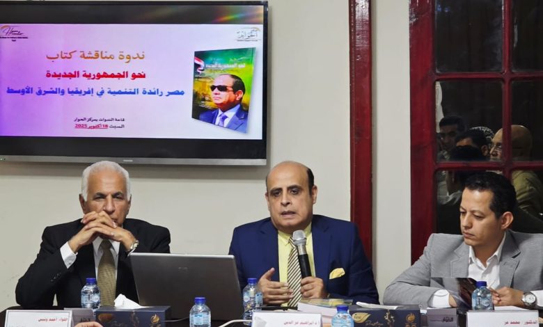 مركز الحوار للدراسات السياسية والإعلامية يناقش كتاب "نحو الجمهورية الجديدة مصر رائدة التنمية في أفريقيا والشرق الأوسط" للمؤلف د. إبراهيم عز الدين