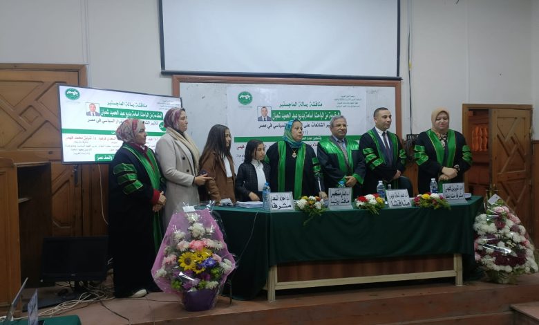 وتكونت لجنة المناقشة والحكم من كلا من الأستاذة الدكتورة هدي حافظ ميتكيس – رئيسا ومناقشا