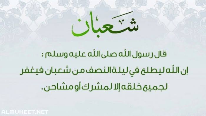 إن الله ليطلع في ليلة النصف من شعبان فيغفر لجميع خلقه إلا لمشرك أو مشاحن ” . رواه ابن ماجه.