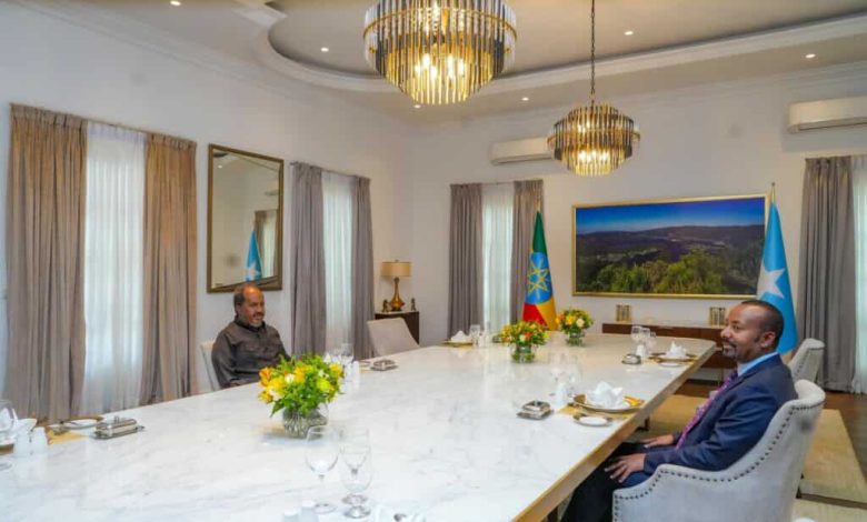 وفى بيان نُشر على الصفحة الرسمية لرئيس الوزراء الإثيوبى، أوضح آبي أحمد أنه أجرى مباحثات مع الرئيس حسن شيخ محمود تناولت القضايا الثنائية والإقليمية ذات الاهتمام المشترك، مشيراً إلى أن الجانبين جددا التزامهما بتعزيز التعاون من أجل تحقيق السلام والتنمية فى منطقة القرن الإفريقى.