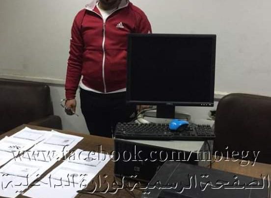 عقب تقنين الإجراءات تم ضبط المذكور وبتفتيش المطبعة خاصته عثر بداخلها على جهاز كمبيوتر وطابعة وبفحصه فنياً تبين أنه يحوى عدد من الملفات من بينها أختام خاصة بالعديد من الجهات الحكومية .