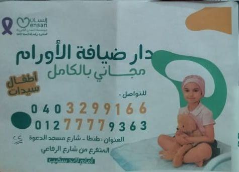 مؤسسة إنسان الخيرية تفتح أبوابها للمرضى الذين يحتاجون للرعاية بعد تلقى العلاج فى المستشفيات بدار رعاية الأورام فى مدينة طنطا شارع مسجد الدعوة المتفرع من شارع الرفاعى .