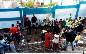 وتم غرس أشجار مثمرة مقدمه من إدارة شئون البيئة بعد وضع التربة المناسبة وعمل احواض للزرع والشجر