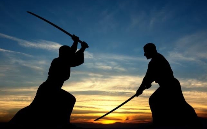 هم المبارز ضاحكا ساخرا من شيب شيخ من زوجة من طفل لايبالي لا يفرق في الضربات بينهم