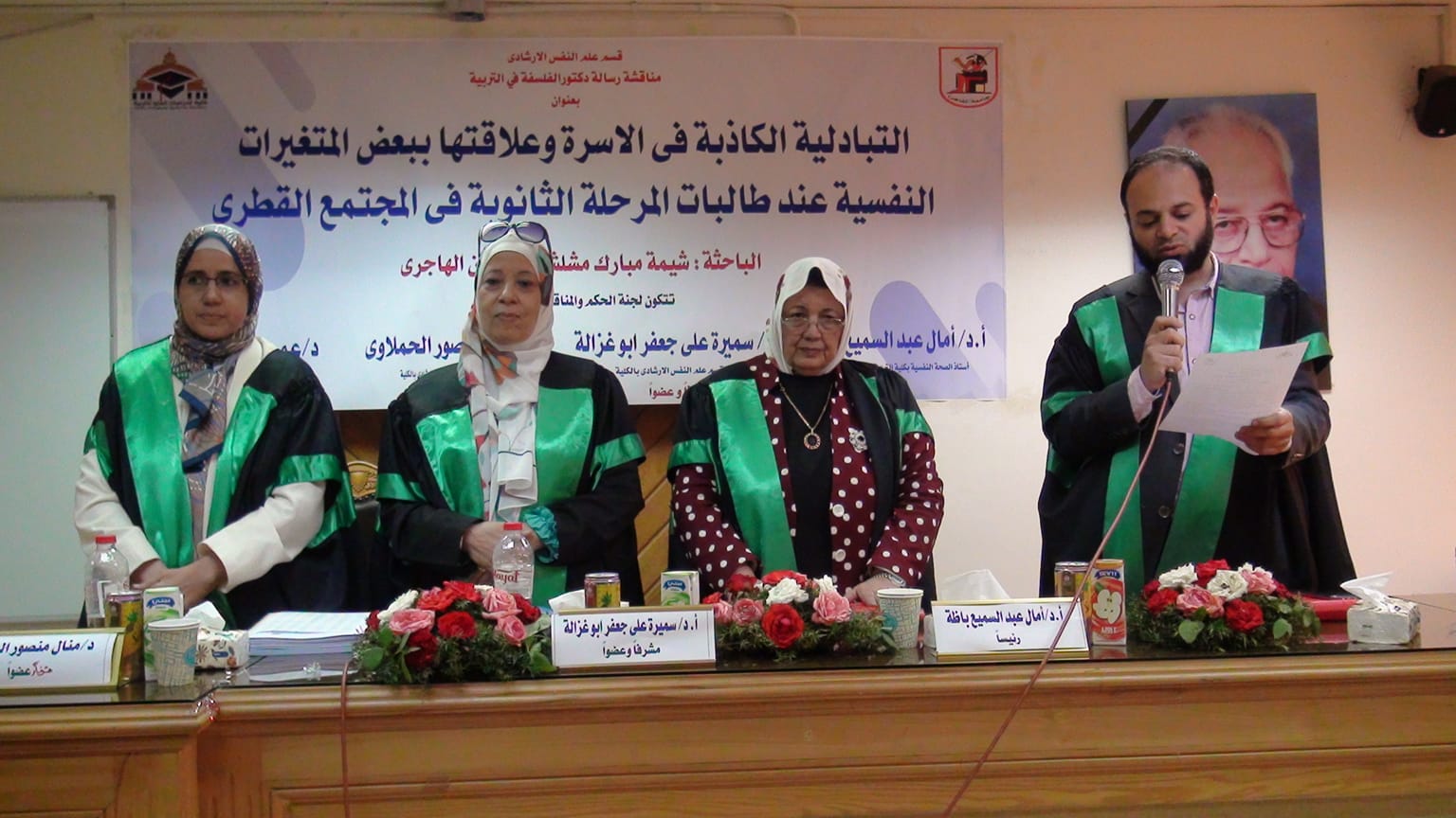 وا د سميرة علي جعفر ابو غزالة استاذ متفرغ بقسم علم النفس الإرشادي بالكلية ، مشرفا وعضوا