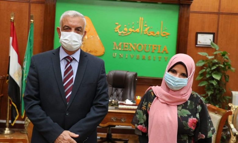 التقى الدكتور عادل مبارك رئيس جامعة المنوفية بالأستاذة نادية الفرماوى عضو المجلس القومى للمرأة ومسئول لجنة المرأة ذات الإعاقة .