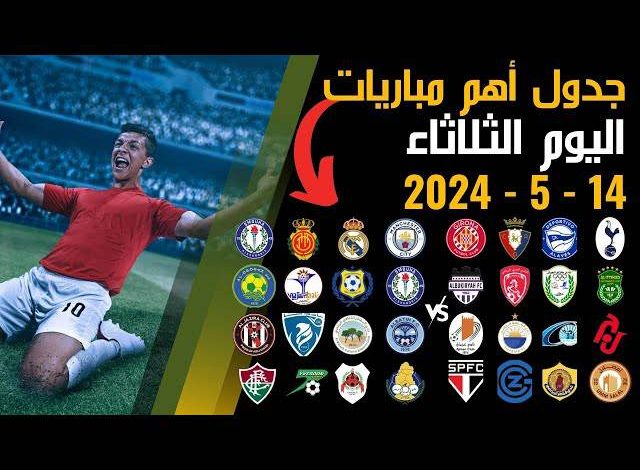 ويقدم لكم موقع وضوح الإخباري أبرز مواعيد مباريات اليوم الثلاثاء 14 مايو 2024 والقنوات الناقله لها.