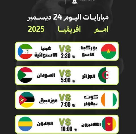 عشاق كرة القدم على موعد اليوم مع وجبة كروية دسمة، حيث تختتم الجولة الأولى من دور المجموعات في كأس أمم إفريقيا 2025، إلى جانب مواجهات قوية في البطولات المحلية والإقليمية. ويحرص موقع وضوح الإخباري على تقديم جدول مواعيد أبرز مباريات الأربعاء 24 ديسمبر 2025، مع القنوات الناقلة التي تتيح للجماهير متابعة أحداث اليوم لحظة بلحظة.