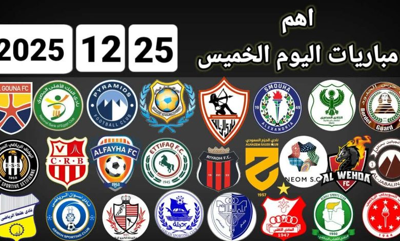 في يوم كروي مليء بالإثارة والمتعة لعشاق كرة القدم، تتواصل منافسات البطولات المحلية والإقليمية بمواجهات قوية ينتظرها الجمهور بشغف. حيث يشهد اليوم الخميس 25 ديسمبر 2025 إقامة عدد من المباريات الحاسمة في كأس عاصمة مصر والدوري السعودي، مع تغطية مباشرة عبر القنوات الناقلة لضمان متابعة جماهيرية واسعة.