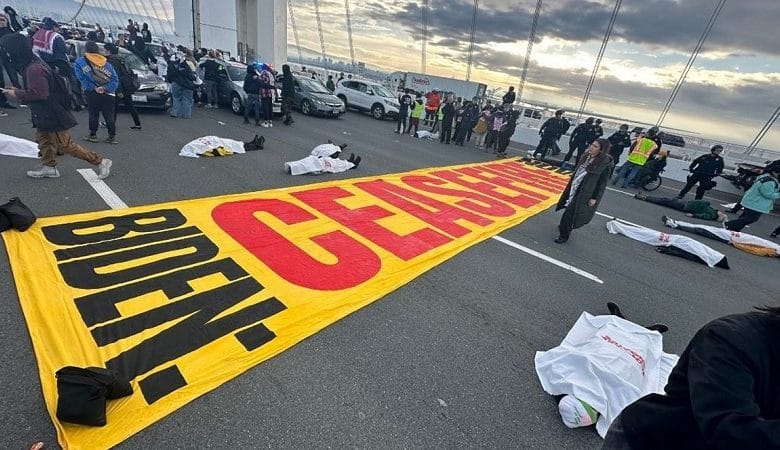 أغلق متظاهرون يطالبون بوقف إطلاق النار في غزة جسر خليج سان فرانسيسكو (باي بريدج) وهو طريق رئيسي يسلكه الركاب إلى المدينة التي تستضيف منتدى التعاون الاقتصادي لآسيا والمحيط الهادي.