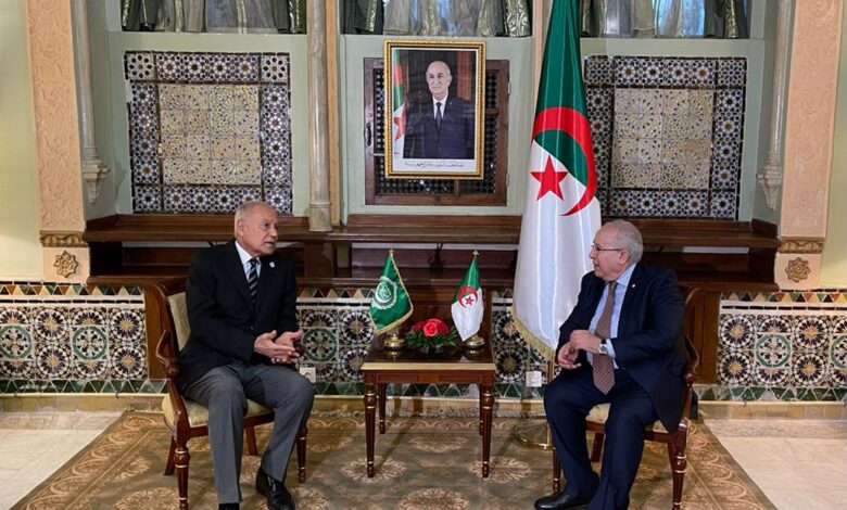 أجرى وزير الخارجية الجزائري رمطان لعمامرة، محادثات ثنائية منفردة مع الأمين العام لجامعة الدول العربية أحمد أبو الغيط، الذي وصل إلى الجزائر، في زيارة عمل تدوم يومين.