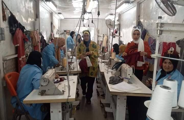 اجراء اختبار نهاية الدورة التدريبية للتفصيل والخياطة المنعقدة بالسيارة المتنقلة بمركز ساحل سليم