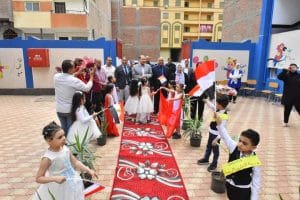 وحيث كان في استقبال محافظ أسيوط تلاميذ المدرسة رافعين أعلام مصر مرددين النشيد الوطني وتم تقديم بعض الفقرات الفنية للأطفال التي لاقت استحسان الجميع