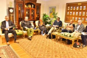 استقبل اللواء عصام سعد محافظ أسيوط اليوم الثلاثاء 31 يناير 2023 وفد منظمة الأغذية والزراعة للأمم المتحدة “الفاو” برئاسة كريس بيكر الاستشاري بمنظمة الفاو ومارجولين جونجمان وجانيت ميجليس من السفارة الهولندية لبحث سبل التعاون المشترك بين محافظة أسيوط والمنظمة الدولية الفاو خلال الفترة القادمة بما يتوافق مع متطلبات الدولة بهدف تحقيق الأمن الغذائي ورفع مستوى معيشة صغار المزارعين خاصة في المناطق الريفية النائية وقرى “حياة كريمة” تنفيذًا لتوجيهات الريس عبدالفتاح السيسي رئيس الجمهورية وفقا لرؤية مصر 2030 واستراتيجية التنمية المستدامة .