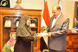 حيث استقبل محافظ أسيوط بمكتبه بديوان عام المحافظة السيدة هدى إبراهيم محمود صالح ابنه مركز القوصية والفائزة بالمركز الأول كأم مثالية على مستوى محافظة أسيوط لعام 2023 وسلمها هدية الرئيس عبدالفتاح السيسي رئيس الجمهورية تقديرا لها ولقصة كفاحها مع الأبناء ولما قدمته لأسرتها خلال مسيرتها الاجتماعية مما أهلها للاختيار لتفوز بالمركز الأول على مستوى المحافظة.