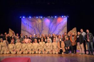 وفي نهاية العرض حرص الحضور على التقاط الصور التذكارية مع مقدمي العرض المسرحي وأسرة الشهيد تم تسليم درع تذكاري وشهادة تقدير لأسرة الشهيد أبانوب الذي استشهد أثناء تنفيذ العمليات العسكرية بسيناء في العام الماضي بعد هجوم إرهابي استهدف كمين البطل 14 بطريق العريش.