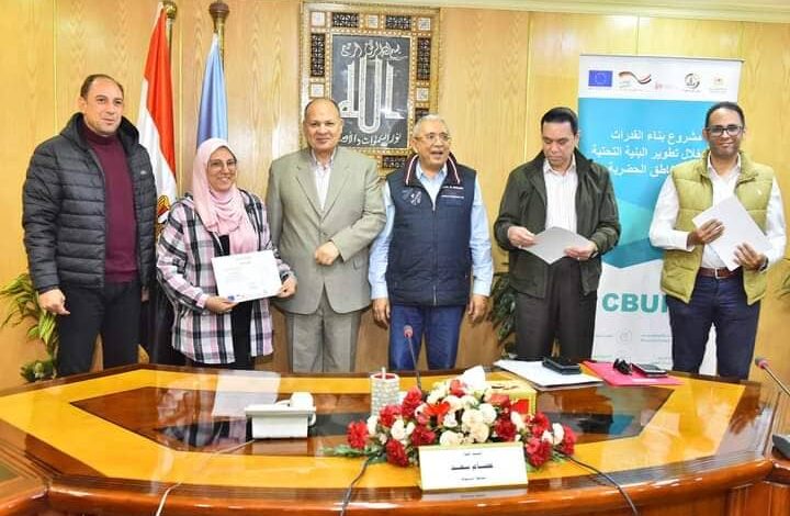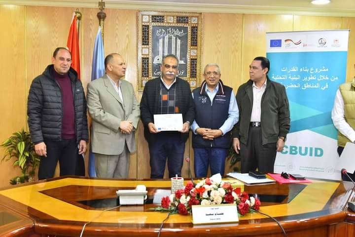 كرم اللواء عصام سعد محافظ أسيوط الحاصلين على البرنامج التدريبىي (GIS) بهدف تطوير قدرات الهيئات المحلية في إدارة وتخطيط مشروعات البنية التحتية بمنهجية وكفاءة والذي أقيم في الفترة من 30 يناير حتى 8 مارس 2023 وذلك في إطار تنفيذ مشروع “بناء القدرات من خلال تطوير أعمال البنية التحتية في المناطق الحضرية (CBUID)” والذي تنفذه الوكالة الالمانية للتعاون الدولي بالتعاون مع صندوق التنمية الحضرية ويستهدف تطوير بعض المناطق غير المخططة بمدينة أبنوب بناءًا على البرتوكول الموقع بالتعاون بين صندوق التنمية الحضرية ووزارة الإسكان والمرافق والمجتمعات العمرانية والوكالة الألمانية للتعاون الدولي “GIZ” ومحافظة أسيوط وذلك بهدف تحسين الظروف المعيشية والوضع الراهن لسكان تلك المناطق ورفع مستوى الخدمات المقدمة للمواطنين بما يتماشي مع خطة التنمية المستدامة ورؤية مصر 2030