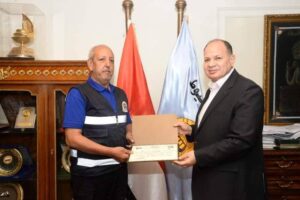 حيث سلم المحافظ “حسن وشنودة” سائق ومسعف بمرفق الإسعاف شهادتي تقدير تقديرًا لهما على موقفهما وردهما الأمانة إلى أصحابها ضمن رسالتهما وقسم المهنة في الحفاظ على أرواح المرضى والمصابين وأمانتهم.