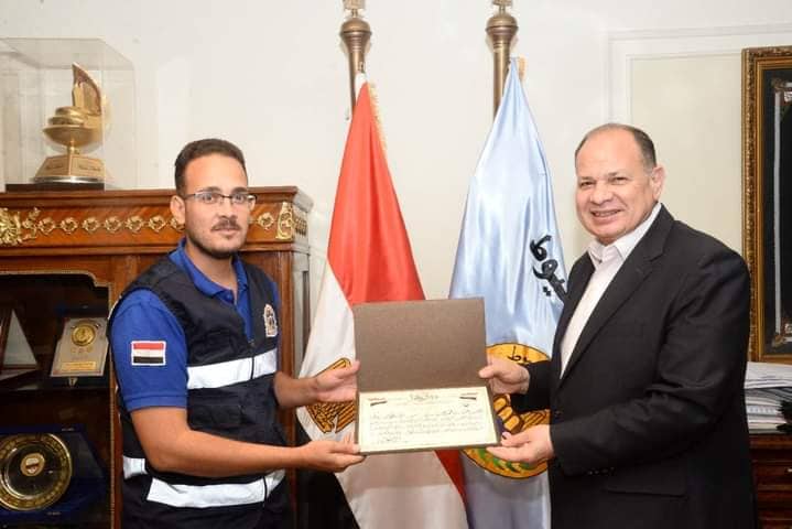 حيث سلم المحافظ “حسن وشنودة” سائق ومسعف بمرفق الإسعاف شهادتي تقدير تقديرًا لهما على موقفهما وردهما الأمانة إلى أصحابها ضمن رسالتهما وقسم المهنة في الحفاظ على أرواح المرضى والمصابين وأمانتهم.