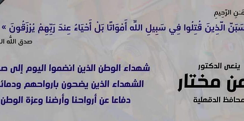 محافظ الدقهلية ينعي شهداء الوطن الذين راحوا فداءا لتراب أرضنا