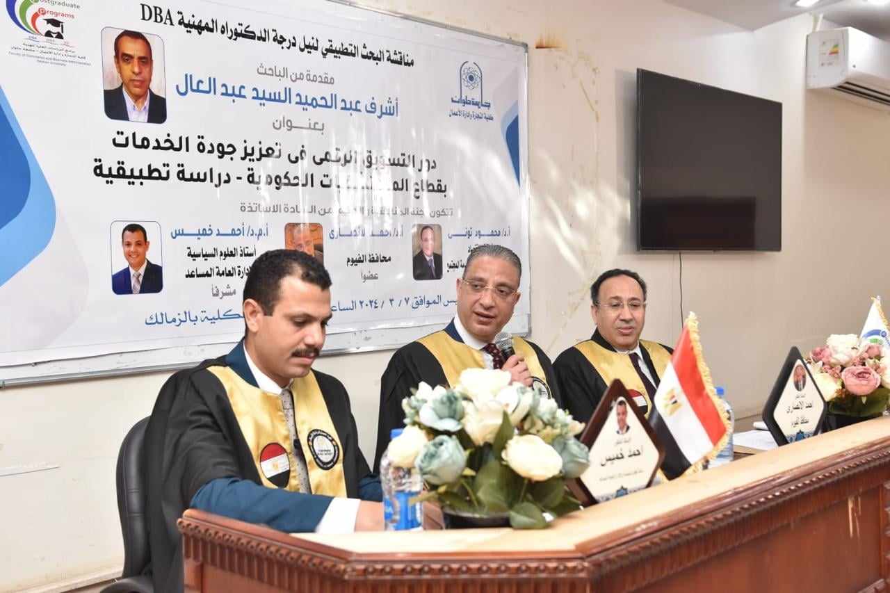 محافظ الفيوم يشارك في مناقشة رسالة دكتوراة بجامعة حلوان