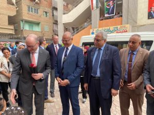 استقبل المهندس ايمن عطيه محافظ القليوبية السيد نيلز أنين، سكرتير الدولة البرلماني للوزارة الفيدرالية الألمانية للتعاون الإقتصادي والتنمية (BMZ) والدكتور ألكسندر سوليجا مدير (GIZ) مصر والسيدة إيفوا دودزي آرثر، مديرة المشروع ، خلال زيارة لمدرسة الخصوص الابتدائية بمدينة الخصوص لأستعراض مشروع انشاء واحلال مدرسة الخصوص المشتركة جاء ذلك بحضور المهندس خالد صديق، رئيس صندوق التنمية الحضرية وممثلون عن السفارة الألمانية وأعضاء الاتحاد الأوروبي ووكالة التعاون الدولي الألمانية في مصر ومن المحافظة الدكتورة ايمان ريان نائب المحافظ واللواء ايهاب حسن سراج الدين السكرتير العام والاستاذ مصطفي عبده وكيل وزارة التربية والتعليم والمهندسة هالة شندى مدير عام الابنية التعليمية والمهندسة حسناء سعيد مدير عام الشئون الهندسية والمهندسة منال زين العابدين مدير التخطيط العمراني