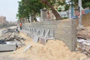 حيث تفقد المحافظ أعمال تكسية حوائط الأسوار بالرخام وتركيب الأسوار الحديدية كما وجه بضرورة عمل رامبات وسلالم بين المرحلة (ج) والمرحلة ( د) للتسهيل علي المواطنين وابراز الشكل الجمالي للممشي كما شدد الهجان على دفع الاعمال وصب البلاطة الخرسانيه في المنطقة المجاورة لنادي الشرطة والتنسيق مع الري في أي اعمال تدبيش أو تكاسي.