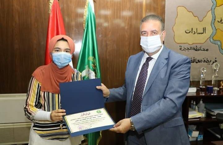محافظ المنوفية يكرم سهيلة أيمن ثالث الثانوية العامة على مستوى الجمهورية