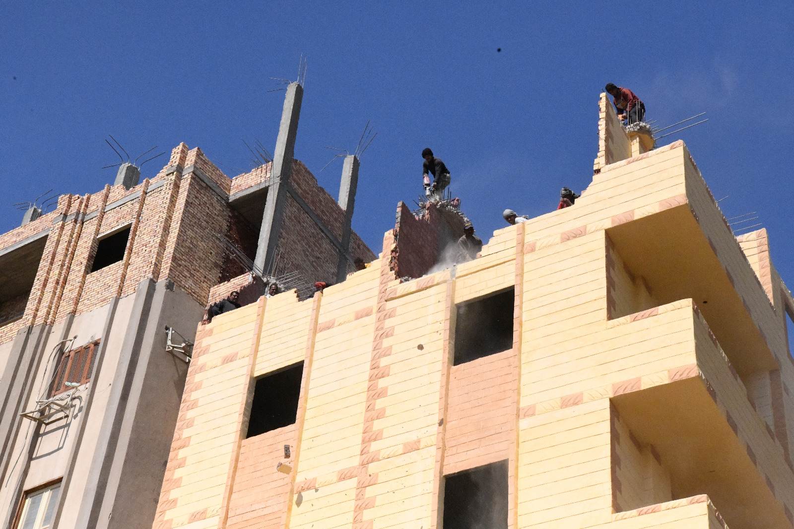 وقال محافظ قنا ، أنه تم إزالة الطابق السابع علوى بأحد العقارات السكنية وجارى إزالة الطابق السادس علوي بذات العقار، اللذان تم بنائهما بدون ترخيص على مساحة ٣٨٠ م٢ ، بالإضافة إلى أنه يجري إزالة الطابق الثاني والثالث والرابع علوى بعقار سكني أخر والذي تم بنائهم بدون ترخيص على مساحة ١٥١ م٢ ، مؤكدا أن أعمال الإزالة تتم على حساب ملاك العقارات.