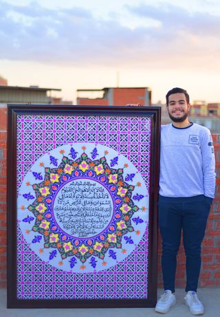محمد نبوى مصمم أكبر برواز إسلامي طالب بهندسة شبين الكوم