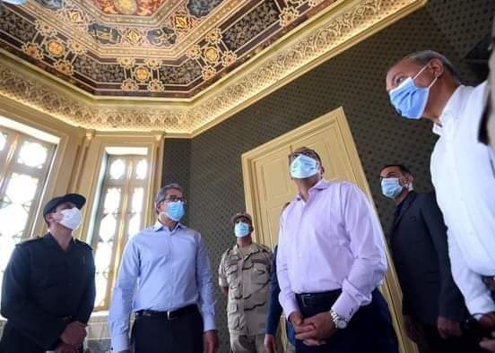 وخلال الجولة التفقدية أشار وزير السياحة والآثار أيضا إلى أنه تم الانتهاء من إعادة تركيب المجرى الرخامي كما تم الانتهاء من أعمال ترميم الزخارف الملونة بالدهانات الزيتية بعد التوصل إلى الرسومات الأصلية المتواجدة بأروقة القصر إضافة إلى الانتهاء من أعمال الترميم الخاصة بدهانات الحوائط بعد التوصل للألوان الأثرية الأصلية للحوائط وعمل فواتير للحوائط للوصول للون الأصلي فضلا عن الانتهاء من فك وصيانة وإعادة تركيب النجف الخاص بالقصر، إلى جانب فك جميع أجزاء الجزيرة الوسطى الرخامية وترميمها وإعادتها لمكانها الأصلي بعد عمل الوصلات والإمدادات الخاصة بالإضاءة لإعادتها لرونقها الأثري