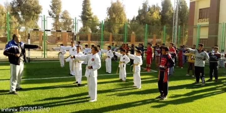 شملت التدريبات لعبة الكارتية للمرحلة السنية من 8الي 12عام ولعبتي كرة القدم والطائرة للشباب فوق 18عام