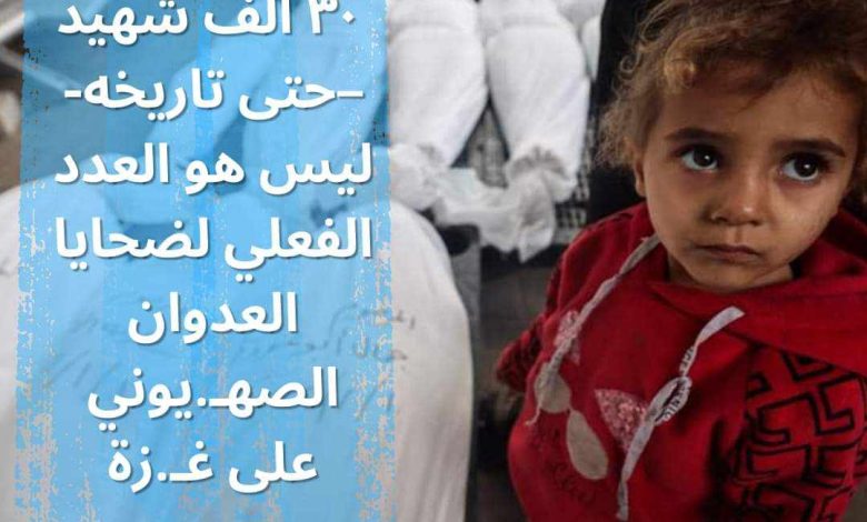 يشير مرصد_الأزهر لمكافحة التطرف، أن عدد شهداء العدوان الصهـ.يوني على قطاع غـ.زة، المعلن بشكل رسمي، والذي تجاوز ٣٠ ألف شخص، حتى تاريخه، يعتبر عددًا منخفضًا للغاية إذا أخذنا في الاعتبار عدة عوامل أخرى، من أهمها: