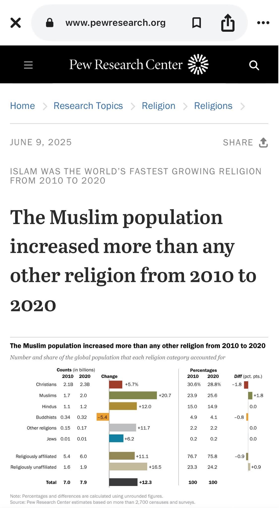 مركز أبحاث أمريكي: الإسلام الأسرع نمواً في العالم واليهود لم يبلغوا أعداد ما قبل الحرب العالمية