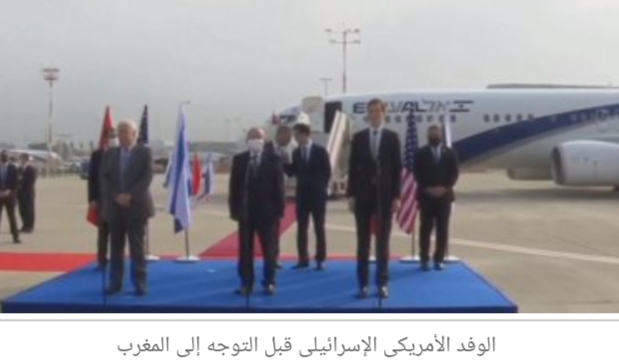 عقد الوفد الأمريكي – الإسرائيلي، مؤتمرا صحفيا قبل التوجه إلى المغرب، فى أول رحلة جوية مباشرة من تل أبيب، وقال جاريد كوشنر مستشار الرئيس الأمريكي دونالد ترامب، إن المغرب وإسرائيل يريدان تعزيز التقارب، مؤكدا أن ترامب عمل على خلق سياسة مختلفة في الشرق الأوسط.