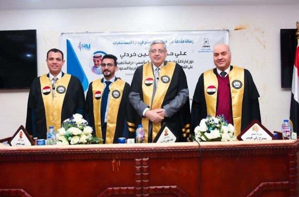 وتمت المناقشة بمعهد إدارة المستشفيات التابع لكلية التجارة جامعة حلوان وكان أعضاء اللجنة :