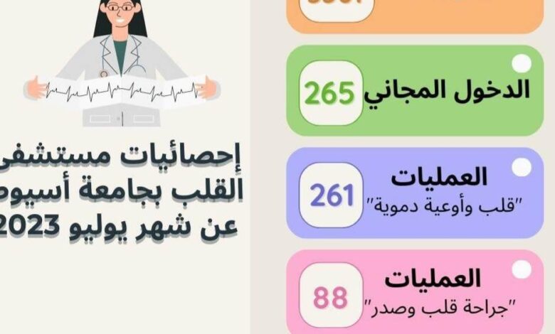 استقبلت مستشفى القلب بجامعة أسيوط 3561 متردداً على العيادات الخارجية خلال شهر يوليو الماضي