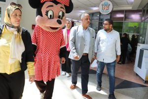 بدأ الصبروط بتوزيع الهدايا الرمزية على المرضى والأطفال ، وساهم فريق نادي التطوع والجوالةبتنفيذ العاب خفيفة وعرض عرائس ماريونت و مهرج مما أدخل البهجة والسرور عليهم .