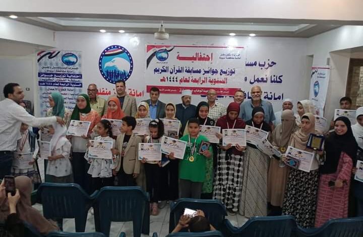 كرم حزب مستقبل وطن بمركز منفلوط بمحافظةأسيوط حفظة القرآن الكريم الفائزين بالمسابقة التي ينظمها الحزب للعام الرابع على التوالي
