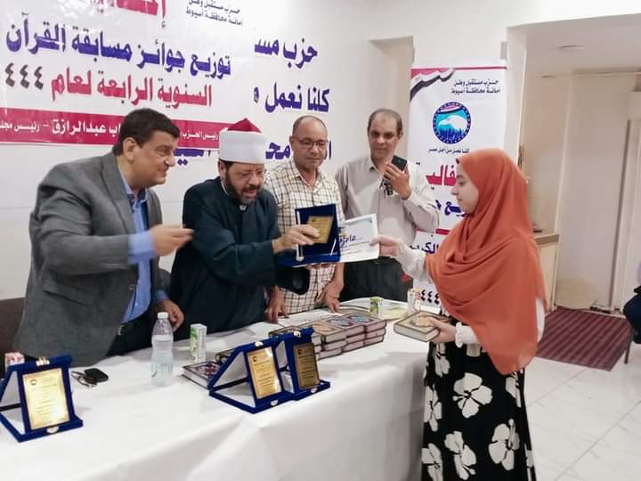 كرم حزب مستقبل وطن بمركز منفلوط بمحافظةأسيوط حفظة القرآن الكريم الفائزين بالمسابقة التي ينظمها الحزب للعام الرابع على التوالي
