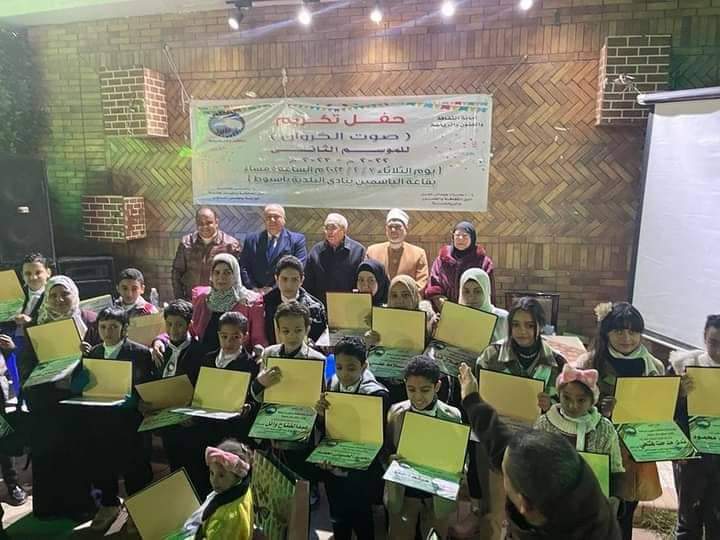 حيث تم تكريم الطفلة ندى مدحت -مركز البدارى- الحاصلة على المركز الأول ويوستينا صلاح الأول مكرر -مركز ابنوب- وعبدالفتاح وائل- قسم اول أسيوط- الحاصل على المركز الثاني وبسملة حازم -قسم ثان اسيوط- الحاصلة على المركز الثاني مكرر وعمر صفوت الحاصل على المركز الثالث واحمد عز مركز ابنوب الحاصل على المركز الثالث مكرر كما تم تكريم كافة المشار كين في المسابقة تقديرا لجهدهم وتشجيعا لهم كما قدم سيف العسيري وفرقته الموسيقية الناشئة معزوفة الضوء الشارد وأغنية انا ابن مصر