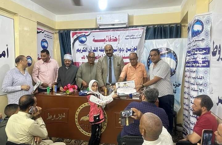 مستقبل وطن أسيوط يكرم ٣٠ من حفظة القرآن الكريم بديروط