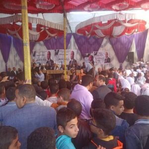 وجري خلال اللقاء تقديم الهدايا العينية للطالبات الفائزات ، في ظل جو احتفالي علي أصوات الطبل البلدي والمزمار وسط حضور الآلاف من الطلاب وأهالي القرية وقيادات الحزب والتربية والتعليم.