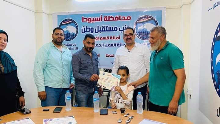 كرمت أمانة العمل الجماهيري بحزب مستقبل وطن بقسم أول أسيوط حفظة القرآن الكريم ويمنحهم شهادات تقدير وبحضور عصام بداري أمين حزب مستقبل وطن بقسم أول أسيوط ومحمد حلمي عيادة أمين التنظيم بحزب مستقبل وطن بقسم أول أسيوط