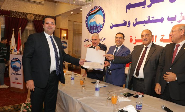 مستقبل وطن يكرم محمد البطران أمين قسم الهرم لدوره الفعال في انتخابات الرئاسة