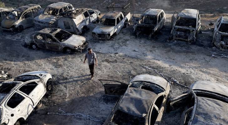 مستوطنون يحرقون مركبات في برقا شرق رام الله