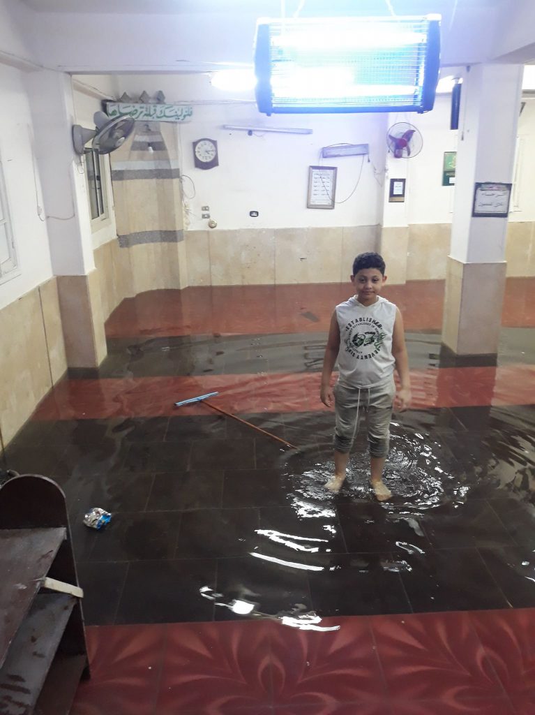 مسجد السلام ببولاق الدكرور يغرق بمياه الشرب